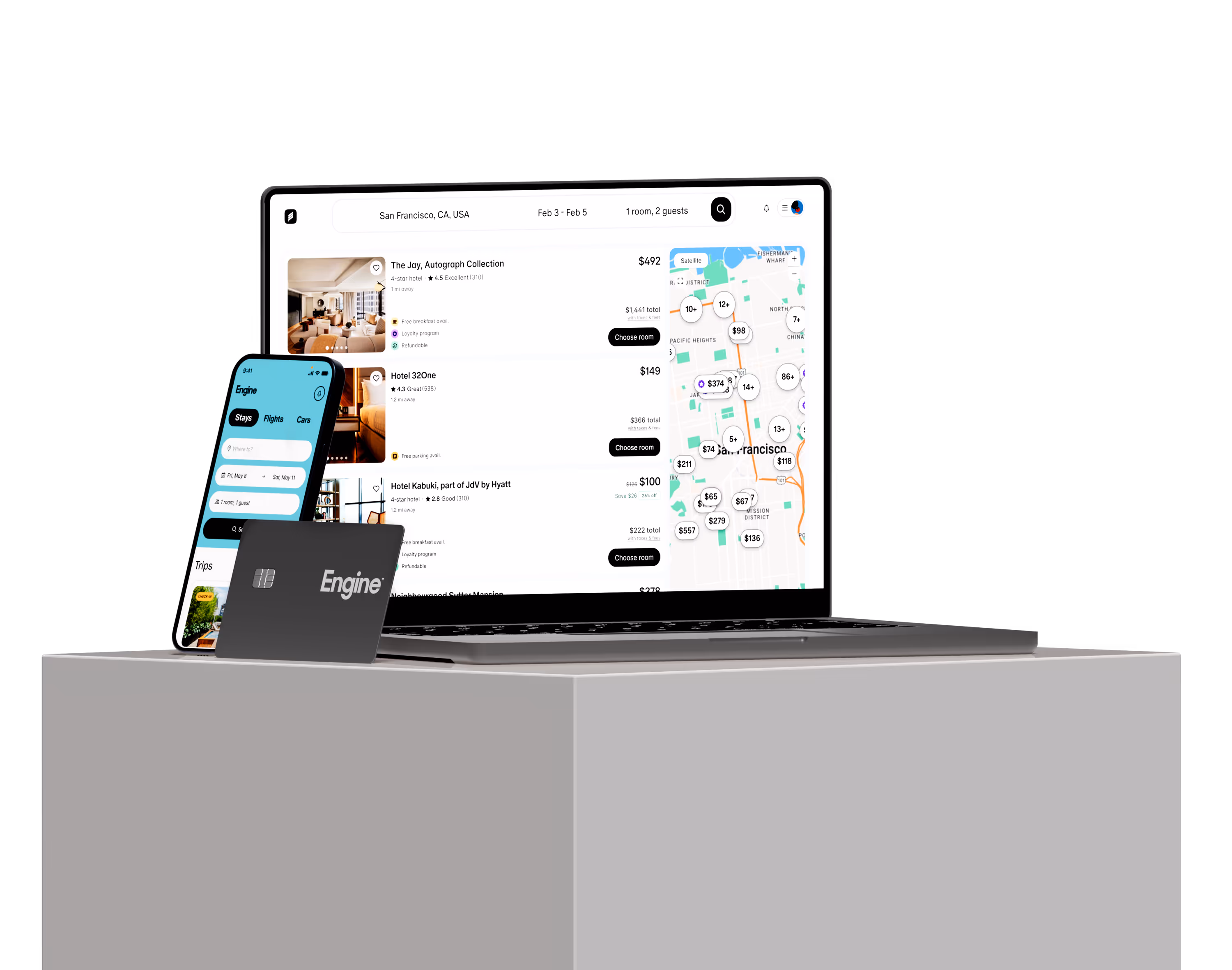 Our platform brings everyone together to radically simplify trip management and give everyone exactly what they want. By booking with Engine, you and your company will save substantially in both time and money.