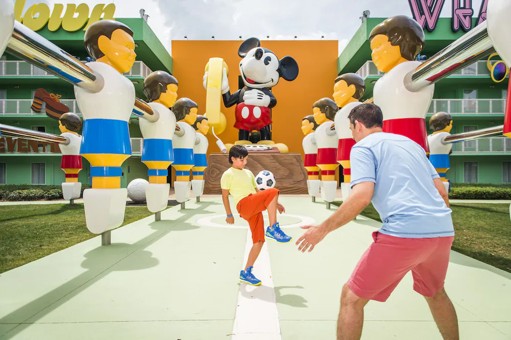 Inside the resort, everything leans into the theme. Courtyards are arranged around oversized sports icons, and the public areas are designed for steady foot traffic. That helps when families are coming and going all day, and it gives coaches and chaperones clear sightlines for quick head counts. The End Zone Food Court is the practical centerpiece, since it supports quick meals and easy coordination when you need the whole group fed without splitting into separate restaurants.