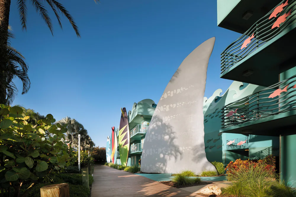The adjacent Disney All-Star Music Resort and Disney All-Star Movies Resort campus area for additional dining and pickup points