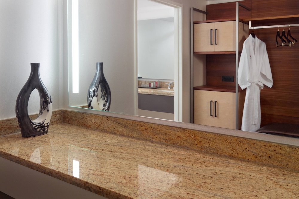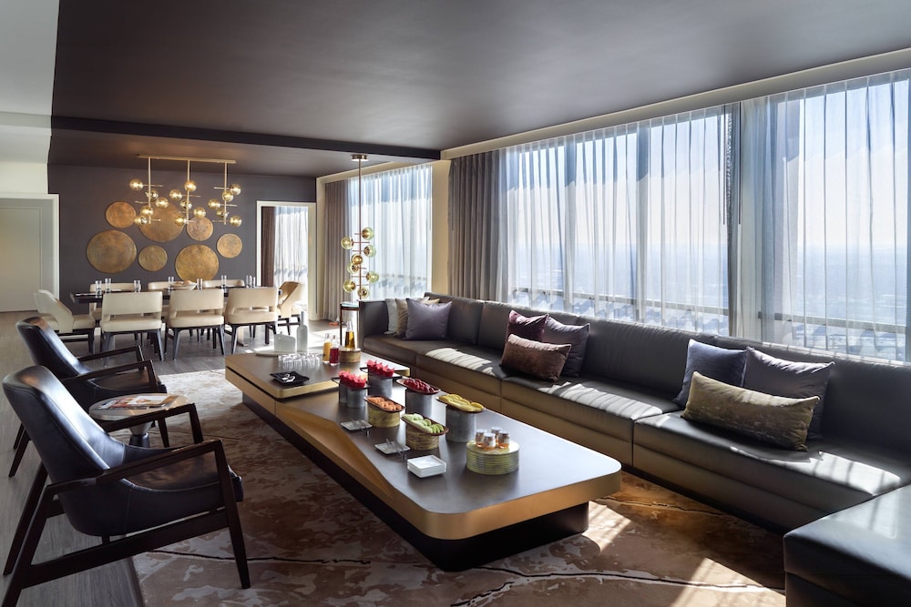 The address puts guests at the center of downtown Atlanta. The Georgia World Congress Center is close by, one of the largest convention facilities in the country. Centennial Olympic Park is within walking distance. The Mercedes-Benz Stadium and State Farm Arena are both reachable without a car. Hartsfield-Jackson Atlanta International Airport connects to downtown via MARTA, making arrivals and departures straightforward for attendees flying in from across the country. The hotel sits directly on the Peachtree Center corridor, surrounded by office towers, transit access, and other major downtown hotels.