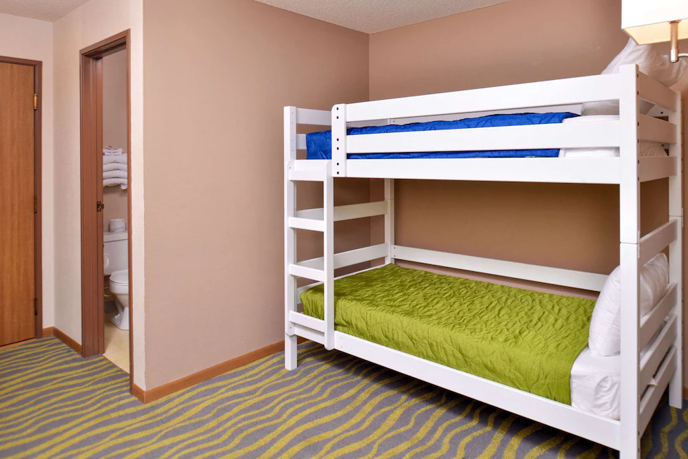 Inside the room mix, the standout is variety. Standard rooms keep it simple, while certain layouts add features families actually use, like bunk-bed configurations, fireplaces in select rooms, in-room whirlpool tubs in select categories, and larger multi-room suites for bigger groups. Most rooms are set up with a refrigerator and microwave, which is practical for snacks, leftovers, and early mornings that do not line up with a restaurant schedule.