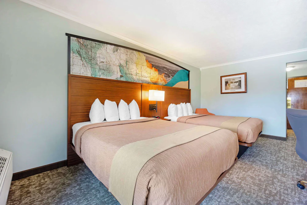 Guest rooms are clean, spacious, and furnished with contemporary decor. Every room is equipped with modern essentials, including a flat-screen television, microwave, and mini-refrigerator. The accommodations provide a quiet and comfortable space to rest after a day of work or exploration in the valley.