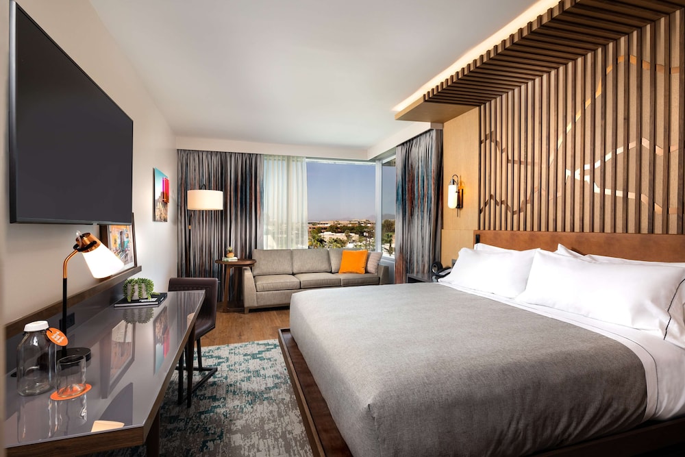 A 164-room, 4-star property at the corner of First Street and Marshall Way in Scottsdale’s Old Town arts district, the seven-story, full-service hotel opened as Old Town’s first new build in over a decade. The ground-floor signature restaurant, Cobre, features a menu of health-focused cuisine with Southwest touches and locally sourced ingredients, while the Outrider Rooftop Lounge serves crafted cocktails and offers views of Camelback Mountain. The fitness center is equipped with Technogym equipment. In-room WiFi runs at 100+ Mbps, and the property also offers a firepit and dry cleaning and laundry services.