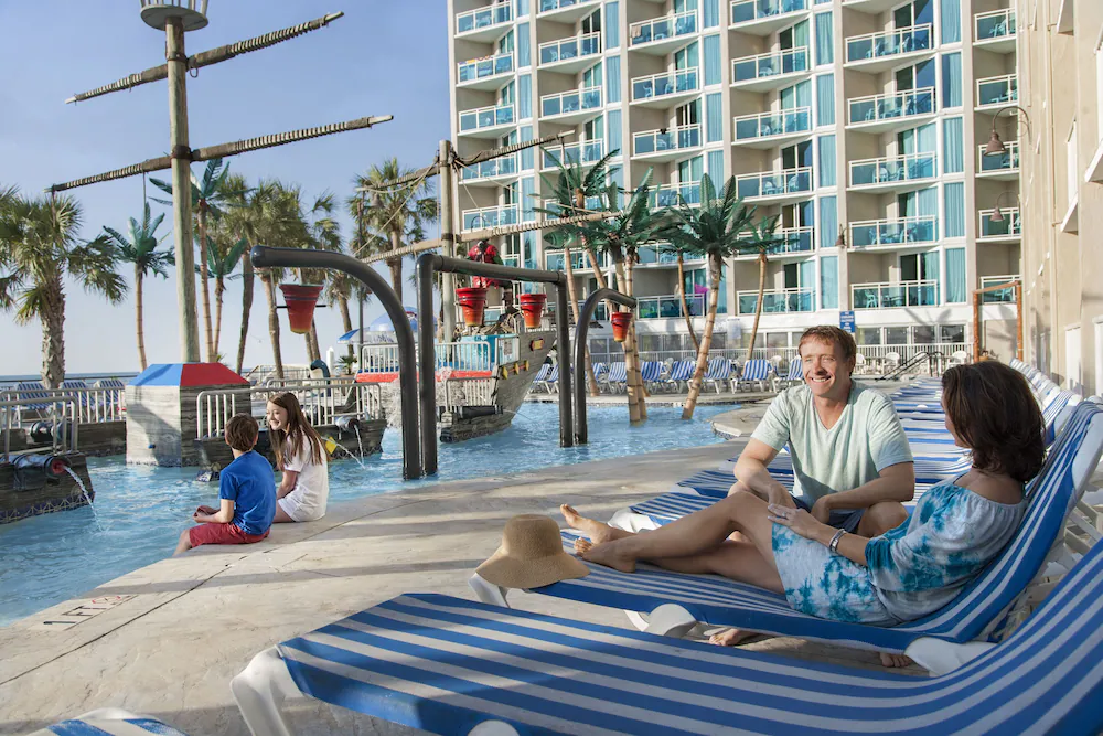 Steps from the sand on South Ocean Boulevard, Captain’s Quarters Resort is built for guests who want an oceanfront base with plenty to do on property. The identity here is family-forward and activity-heavy, with water features and entertainment that keep everyone busy even when the weather changes. For group travel, that translates into fewer moving parts, because you can plan a full day without shuttling people all over Myrtle Beach.
