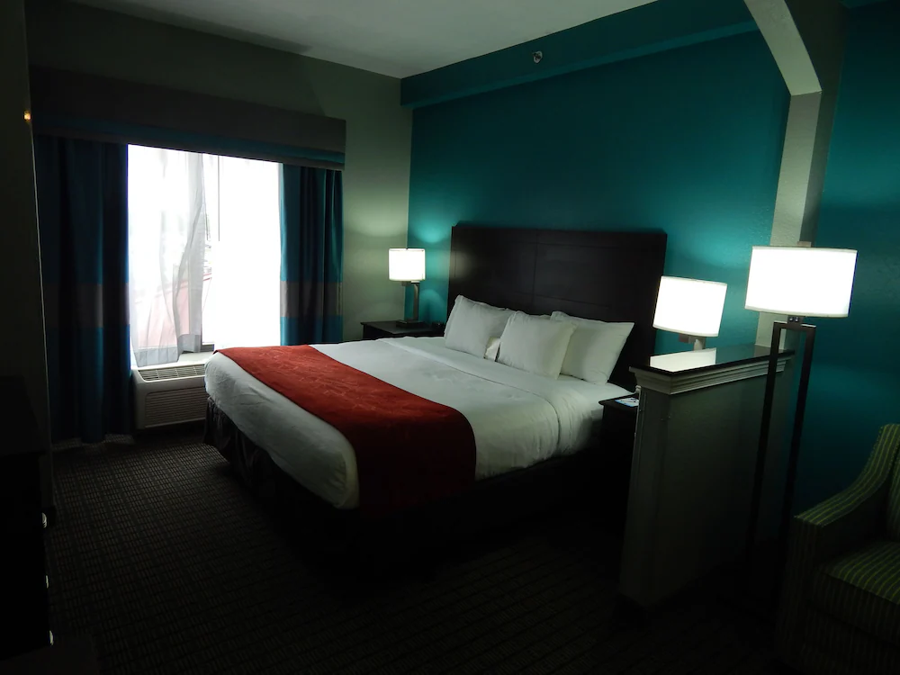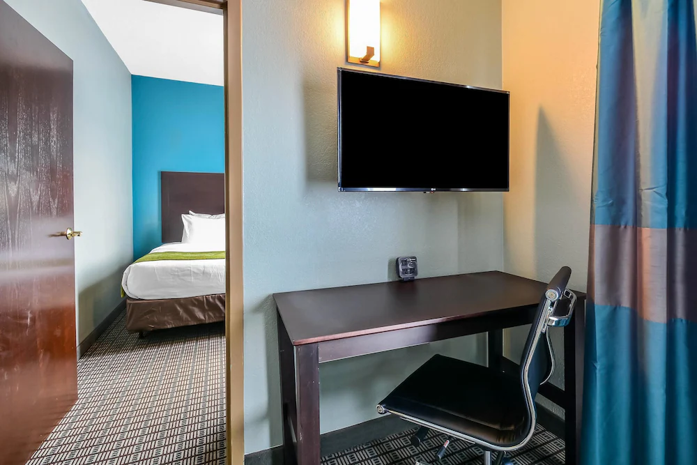 Inside, Comfort Suites has the kind of layout that works well for youth sports trips. Because it is an all-suite hotel, rooms tend to feel more usable when families are traveling with duffels, coolers, folding chairs, extra shoes, and all the clutter that comes with tournament weekends. Suites include a sitting area along with basics like a microwave, refrigerator, and coffee setup, which helps families handle snacks and light meals without having to leave the property for every small need. Free breakfast is a major plus here because it simplifies mornings for groups trying to get out the door on time. The hotel also offers an outdoor pool, a 24-hour fitness area, free Wi-Fi, laundry access, and a business center. None of that is over the top, but it covers the things that actually matter to sports groups staying several nights.