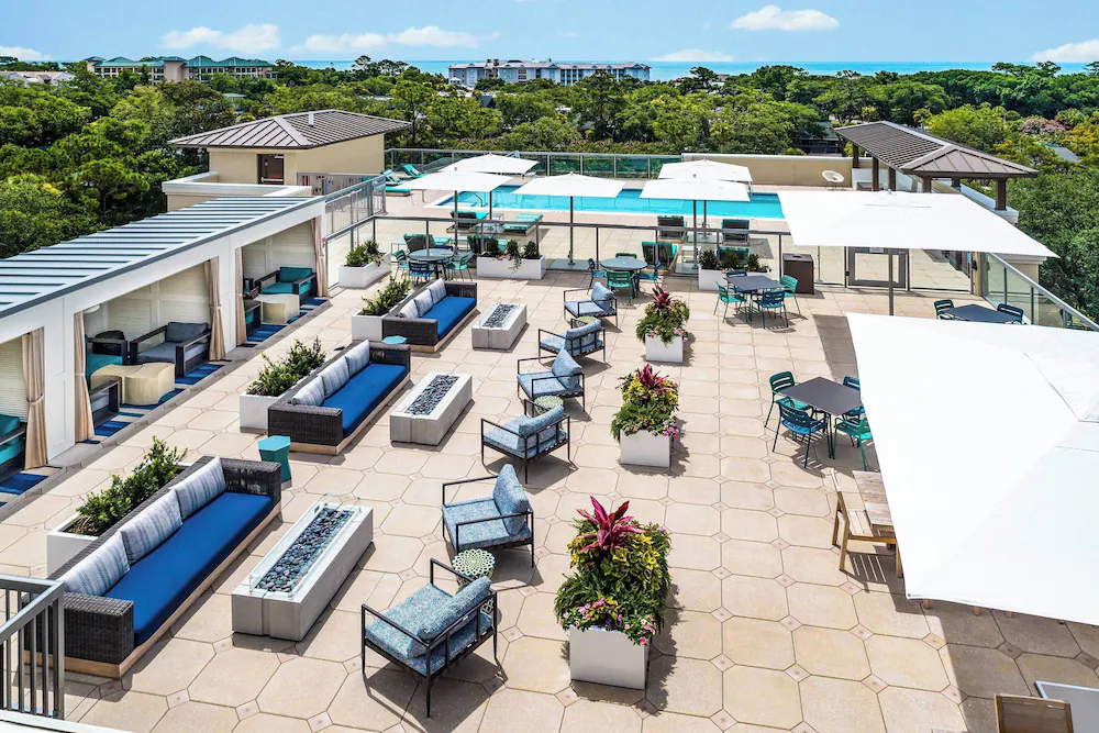 Across the south-end corridor near Coligny Beach Park, Courtyard by Marriott Hilton Head Island works as a modern base for groups that want beach access, dining options, and an easy meet-up zone without building the trip around driving. The feel is updated and social, while still calm enough for teams, tournament groups, and wedding overflow rooms where people need sleep as much as they need convenience.