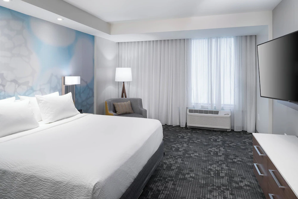 Inside, the layout is straightforward for coordinating a room block. A central lobby flow gives you a clear place to gather, check messages, and regroup before heading out. Guest rooms follow the Courtyard formula, practical work surfaces, comfortable bedding, and a simple setup that supports both short stays and multi-night schedules. When headcount shifts midweek, a consistent property like this reduces confusion compared with splitting your group across multiple smaller hotels.