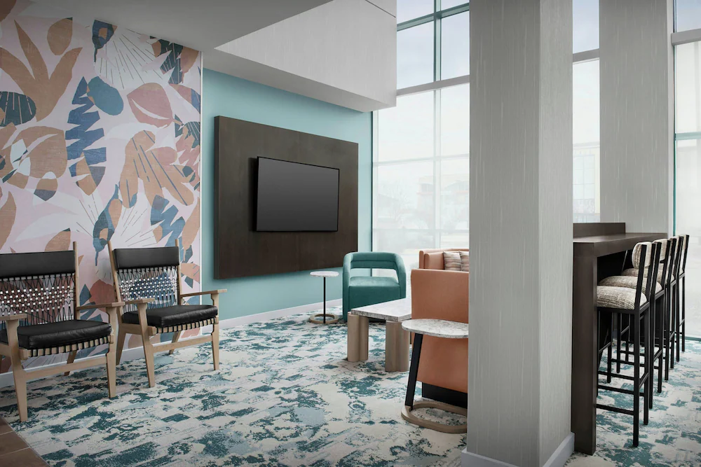 Courtyard-style lobby setup that supports quick arrivals when rosters are submitted in advance