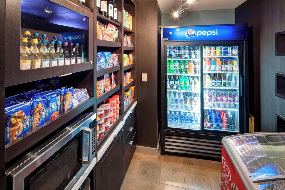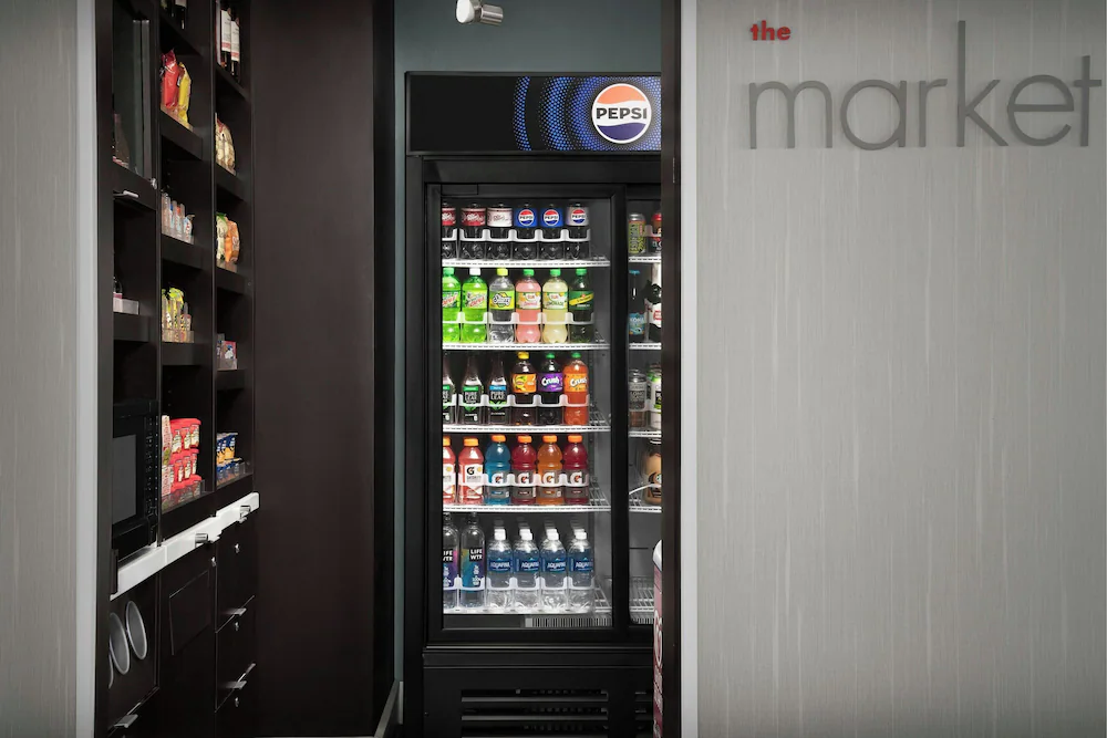Bistro-style lobby dining and coffee outlet common to the Courtyard format, useful for structured mornings