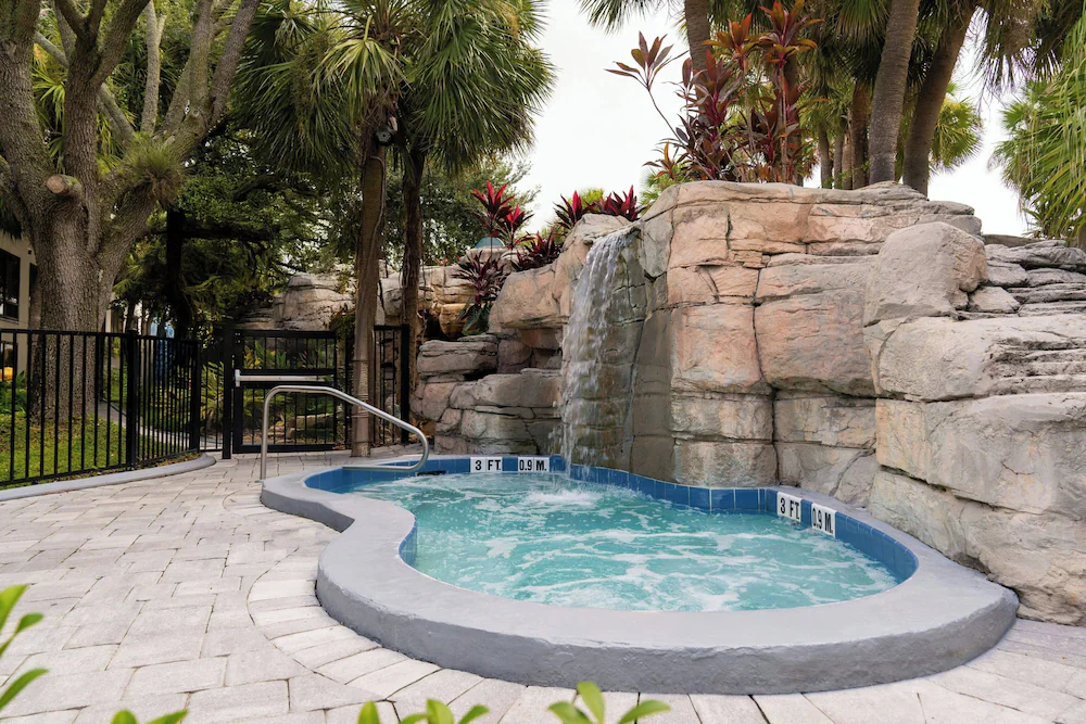 Outdoor pool area that works as a simple downtime option between games