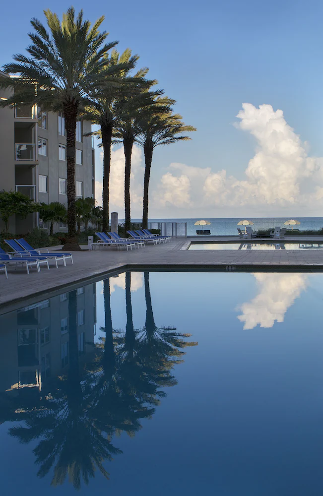Outside, the property’s identity is built around the beach and pool deck rather than big event programming. The beach becomes the simplest decompression tool you have, walk, sit, reset, then head back in. Pools and outdoor seating create a natural meetup point when the group wants to check in without booking a formal room, and the overall footprint supports a quieter end-of-day rhythm.