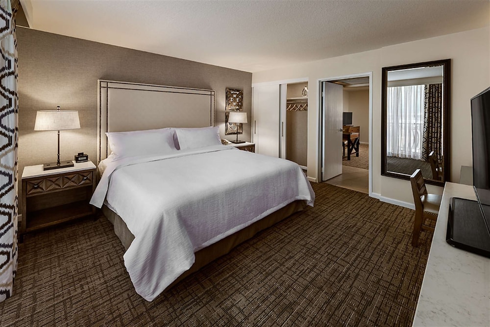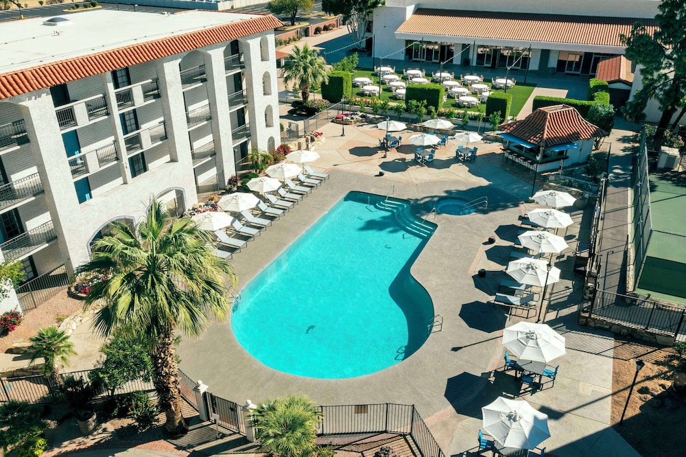 Every suite at Embassy Suites by Hilton Scottsdale Resort comes with a separate living area, a refrigerator, a microwave, and tea and coffee-making facilities, making this 231-room all-suite property a natural fit for extended-stay corporate travel and multi-night group room blocks. The resort sits less than a mile from Old Town Scottsdale, with Camelback Mountain views and proximity to championship golf courses, art galleries, and MLB Spring Training. Complimentary amenities include a full made-to-order breakfast buffet with omelet station and a daily evening reception with beer, wine, cocktails, and appetizers. The property is 15 miles from downtown Phoenix and offers convenient freeway access to major sports and entertainment venues across the metro area.