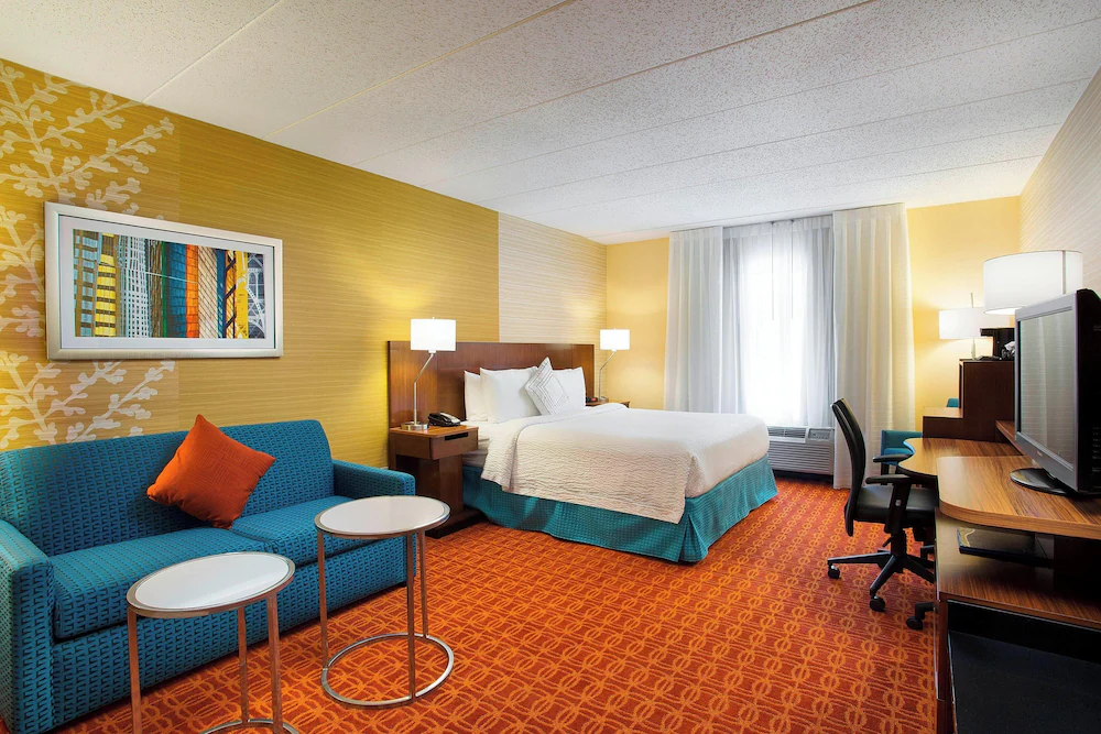 Accommodations at this property reflect the updated design standards of the Marriott brand, favoring clean lines and functional layouts over excessive ornamentation. The rooms are designed to be quiet havens, utilizing sound dampening materials to minimize the auditory impact of the nearby airfield. Guests can expect a restful environment with plush bedding and ample pillows, ensuring sleep is possible regardless of the flight schedule.