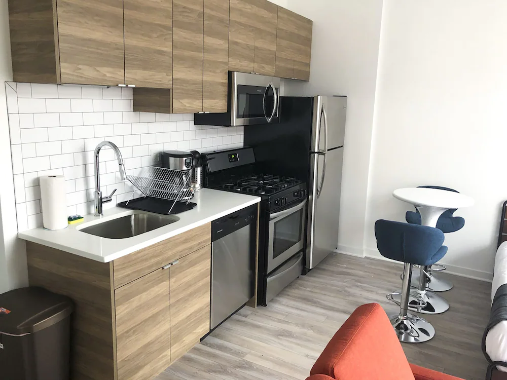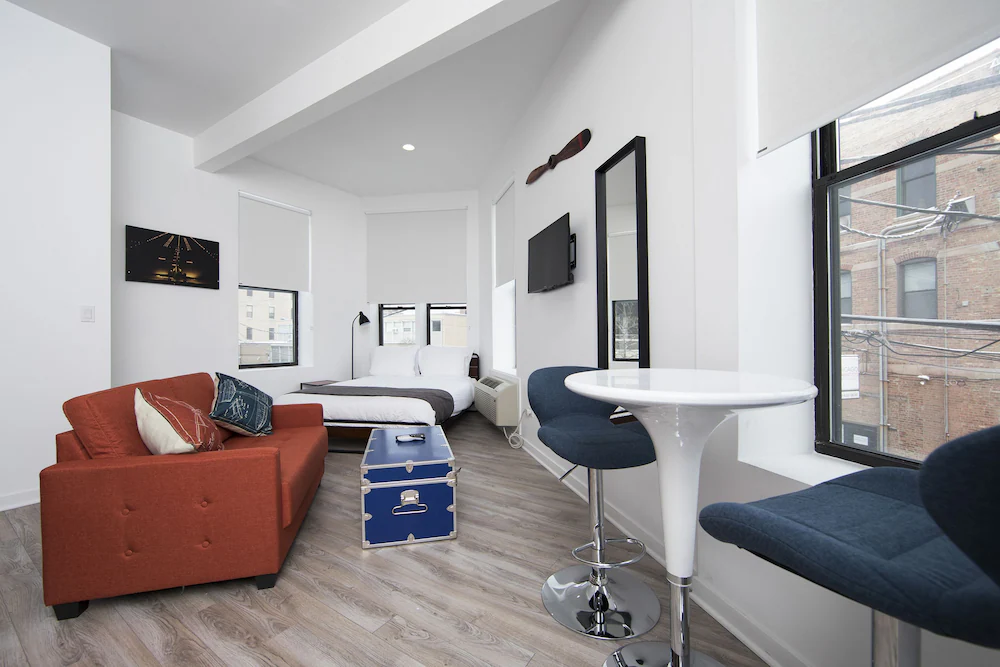 The Ginosi 747 Apartel offers a functional and independent lodging solution located in the West Town neighborhood, just west of the downtown core. Unlike the polished high rises of the Loop, this property is situated in a low rise, mixed use district that provides a more grounded and local perspective of the city. It operates as an apartment hotel, bridging the gap between a standard hotel room and a private rental. This setup appeals to travelers who prioritize utility and autonomy, offering a space where you can live on your own terms without the interruptions of daily housekeeping or formal hotel services.