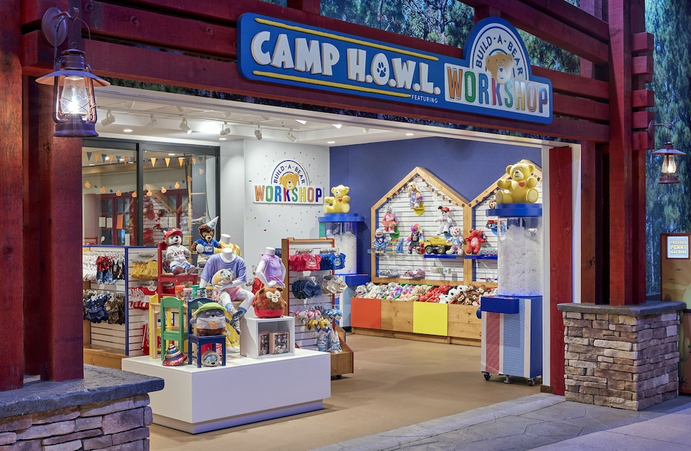 27,000-square-foot Great Wolf Adventure Park featuring a ropes course, arcade, climbing wall, bowling, miniature golf, and MagiQuest.