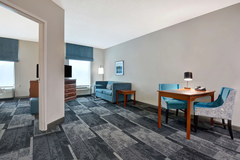 This property also fits groups that need a mix of players, coaches, and family travel under one roof. Connecting rooms can help with placement, and the indoor pool gives players and siblings a simple way to unwind between game days. The fitness area is useful for light stretching, recovery, or keeping routines intact during a long tournament weekend.