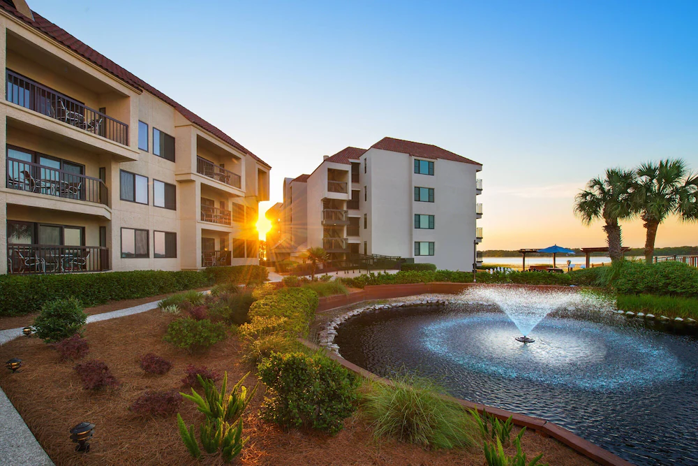 Overlooking Shelter Cove Harbour on Hilton Head Island, Marriott’s Harbour Point and Sunset Pointe at Shelter Cove is a pair of villa resorts that run more like a residential waterfront compound than a traditional hotel. The draw is space and routine, not a beach lobby scene. Many villas include a full kitchen, a living room, and separate bedrooms, which changes how a group can operate day to day, especially when you want everyone under one reservation umbrella without forcing every meal and meetup into a restaurant plan.