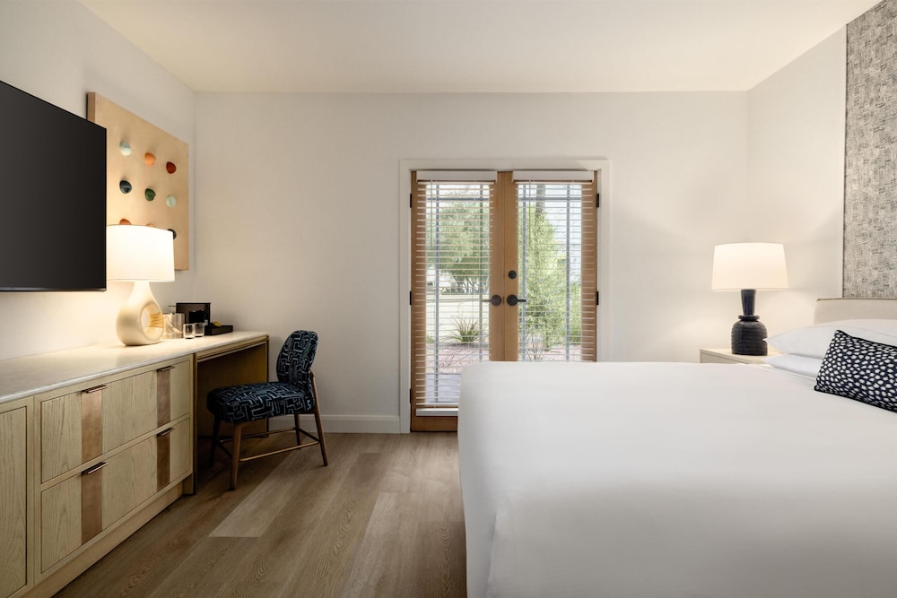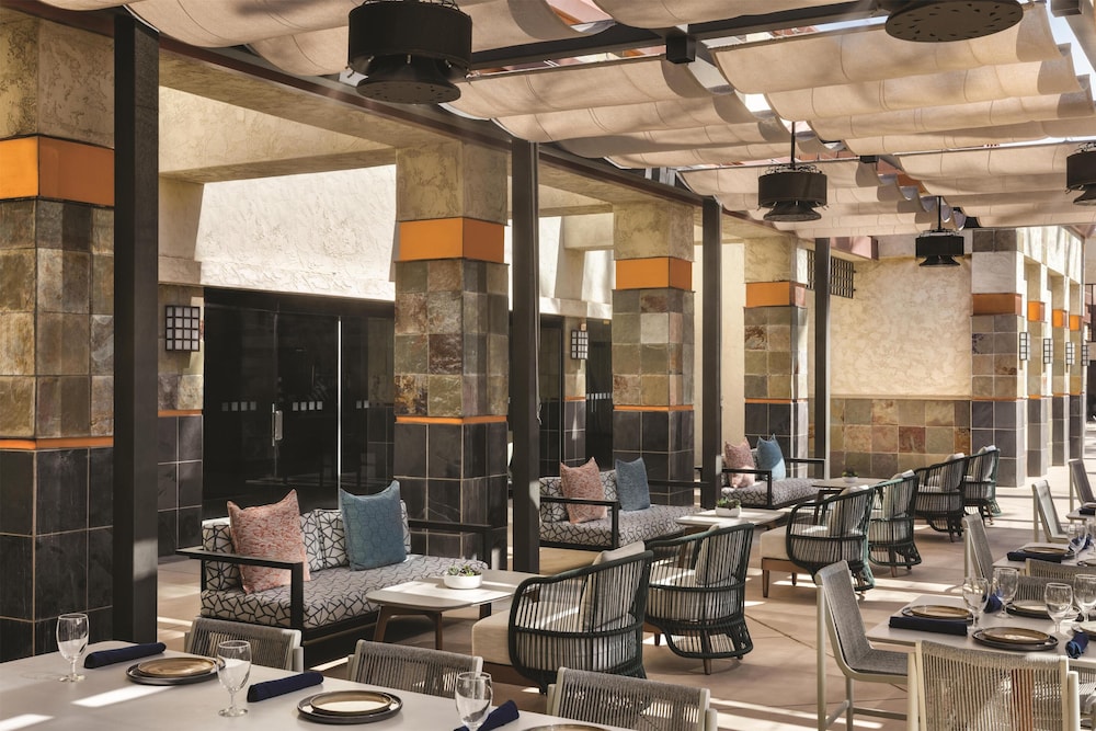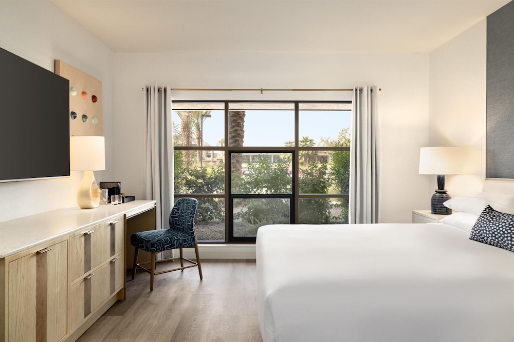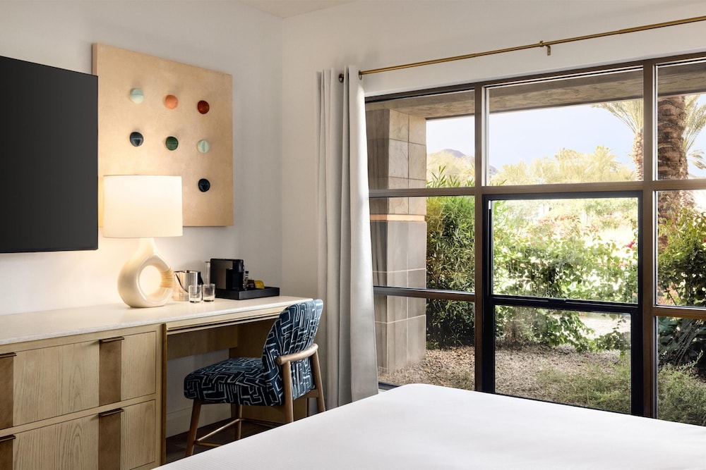 With 266 rooms and 45 two-bedroom villas spread across 20 acres of Sonoran Desert landscape, this AAA Four-Diamond resort on North Scottsdale Road is a reliable anchor for large group room blocks in the Scottsdale market. The villas include full kitchens, private patios, and access to a dedicated private pool, giving groups traveling with executives or extended-stay guests a meaningful upgrade option. Three on-site restaurants, a full-service spa, a Starbucks inside BlueFire Grille, and a complimentary 3-mile area shuttle round out a self-contained resort experience. The property carries no resort fees, which travel managers tend to appreciate when reconciling group billing.