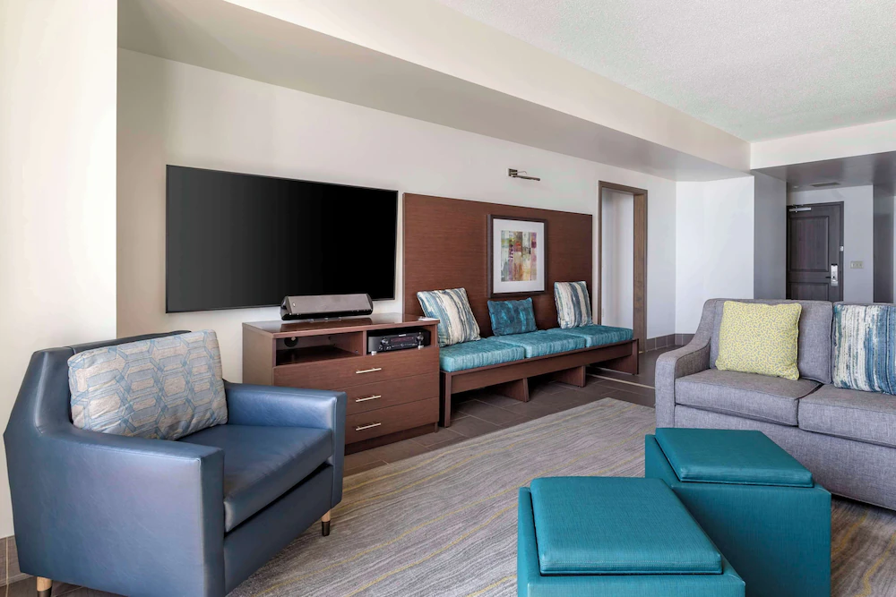 Oceanfront and built for longer stays, Hilton Vacation Club Oceanaire Virginia Beach operates more like a beach residence than a standard hotel. The property sits on the Boardwalk, so your group can step outside and immediately plug into the oceanfront walking corridor, restaurants, and the main activity strip. For planners, that location reduces transportation decisions and gives everyone an easy reference point when schedules split.