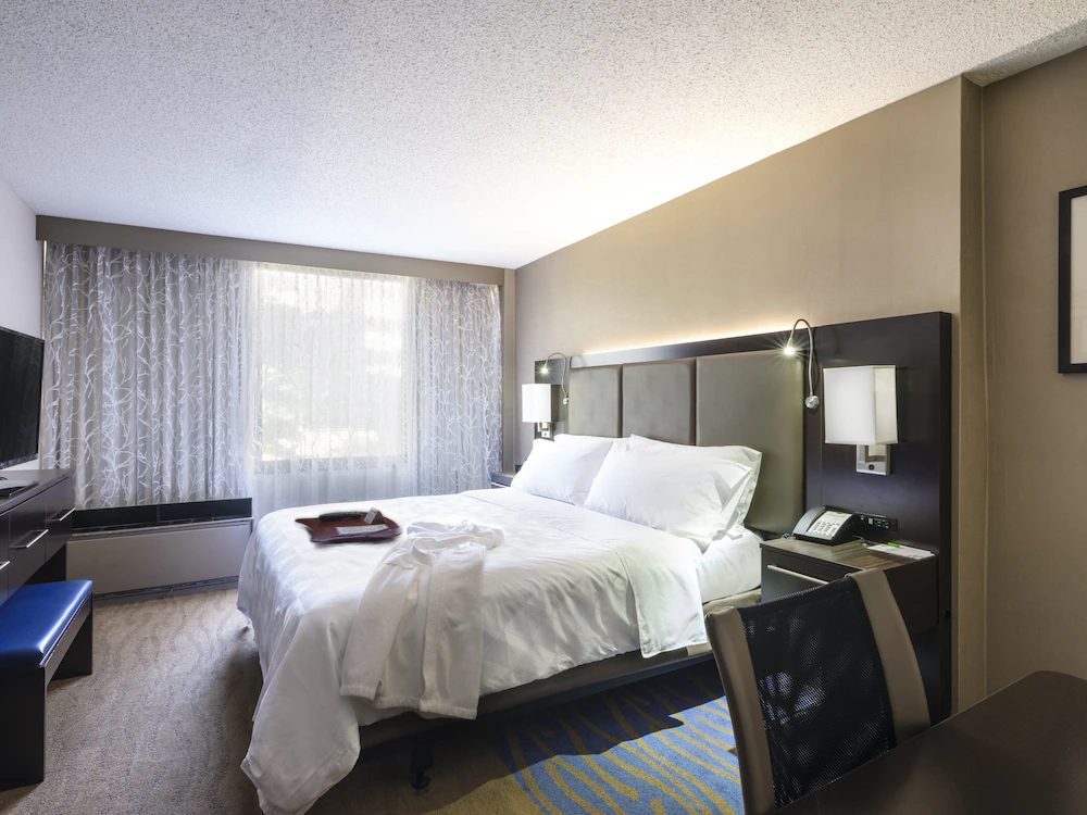 The second advantage is scale. This is not a boutique property trying to handle a major event weekend. It is a 536-room hotel with a real meeting-and-events setup, on-site dining, parking, and enough room variety to accommodate different travel patterns within the same group. Some travelers may only need a standard room, some may want queen bed layouts for shared occupancy, and leaders may prefer suites or one-bedroom options. The property also has around 8,000 square feet of meeting space, which gives organizers more breathing room for check-in coordination, prayer gatherings, team briefings, or small private functions depending on availability and booking terms.