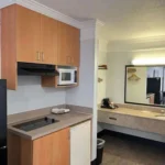 Our suites are thoughtfully designed to be your home away from home. The centerpiece is the “Working Wall,” an innovative, modular system that integrates a fully equipped kitchen, a flexible workspace, and customizable shelving. The kitchen features a full-size refrigerator, microwave, dishwasher, and sink, giving you the freedom to store groceries and prepare meals. Movable furniture and a privacy curtain allow you to arrange the space to your liking, separating the living and sleeping areas. As a proudly pet-friendly hotel, we welcome your four-legged family members, making us an ideal choice for those relocating with their entire household.