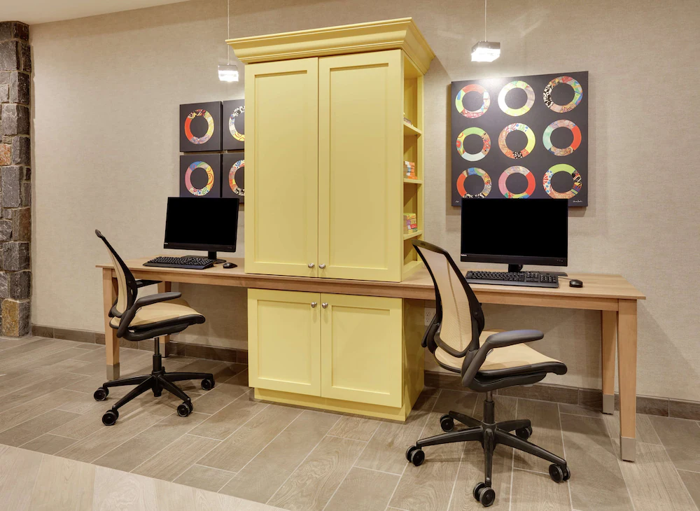Business services and lobby work areas for printing and basic tasks