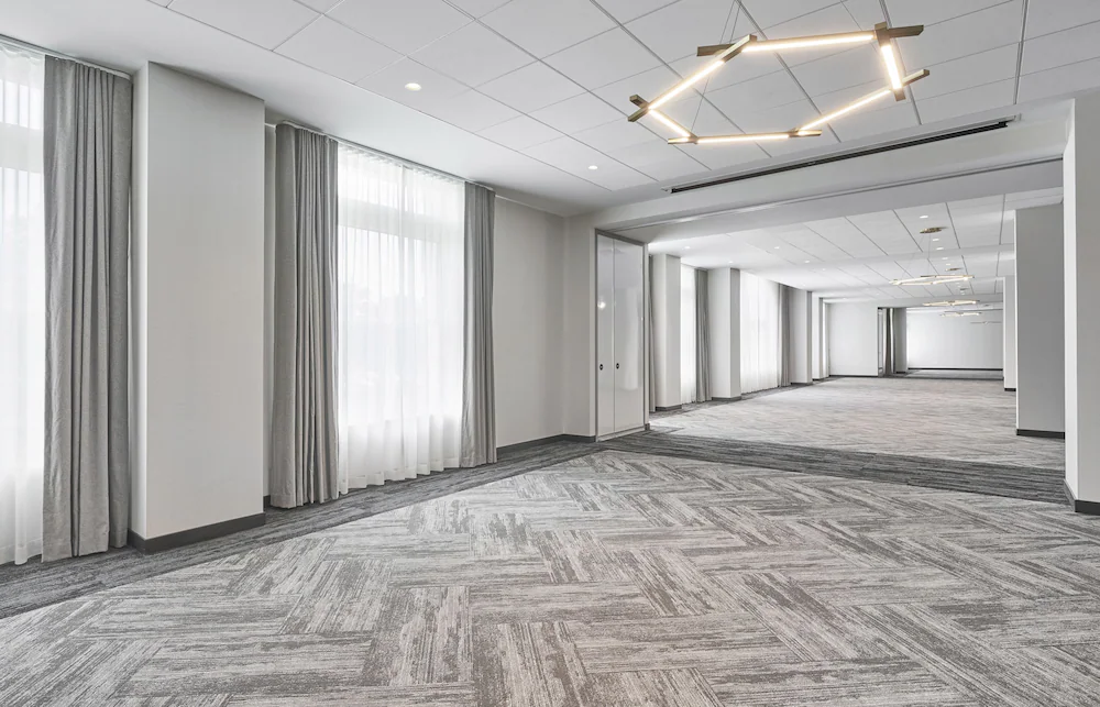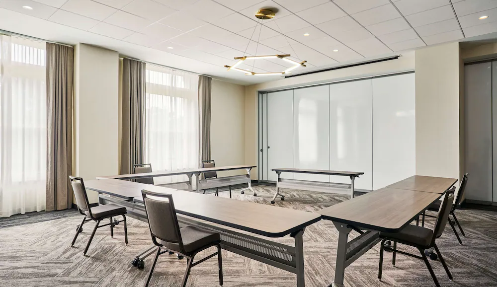 For dining and socializing, the “H Bar” provides a relaxed setting for evening drinks and light bites. Additionally, the hotel is part of a larger mixed-use development that includes a food hall, giving guests immediate access to a variety of local dining vendors without even leaving the building campus.