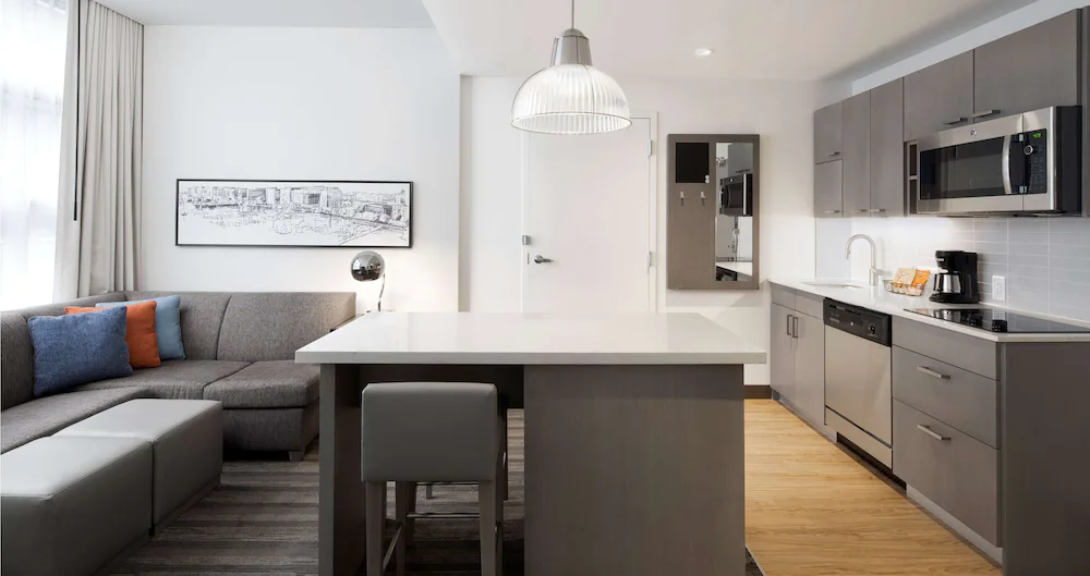 That is where this hotel starts to make sense. It sits at The Wharf, one of the more active and walkable parts of Southwest Washington, but the property itself still leans into the extended stay format that gives people a little more personal space. That combination is useful for groups. The setting feels lively, with restaurants, waterfront paths, and open public areas nearby, yet the hotel does not rely only on the neighborhood to carry the stay. The building gives groups a workable home base, especially when some travelers want to socialize and others want a quieter place to step away for an hour before dinner, prayer, or an early lights-out before the event.