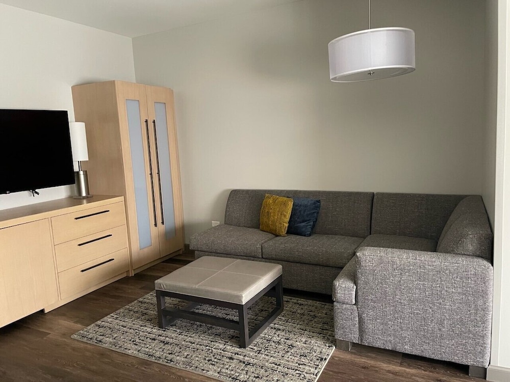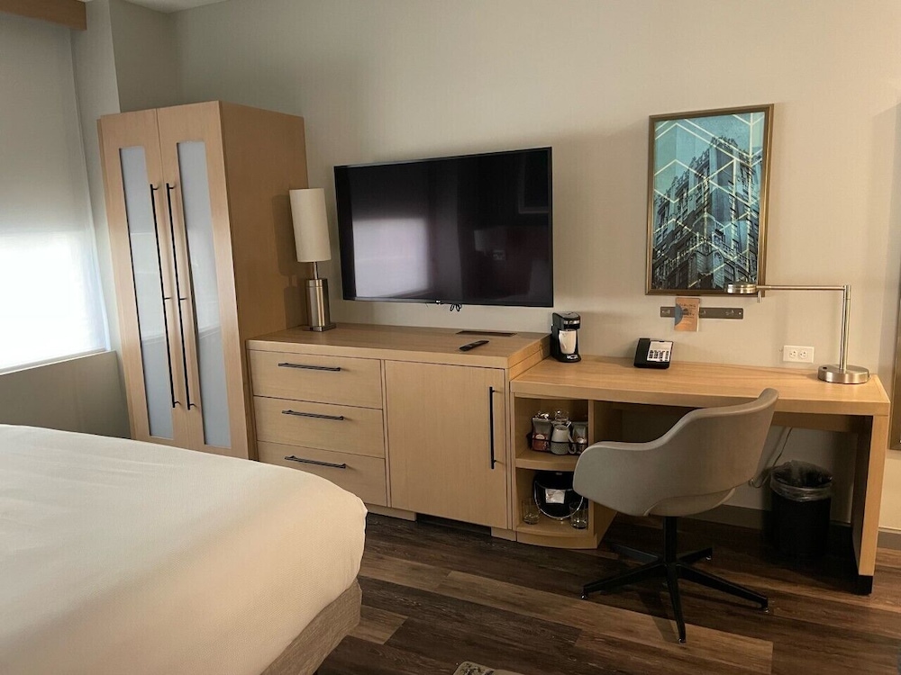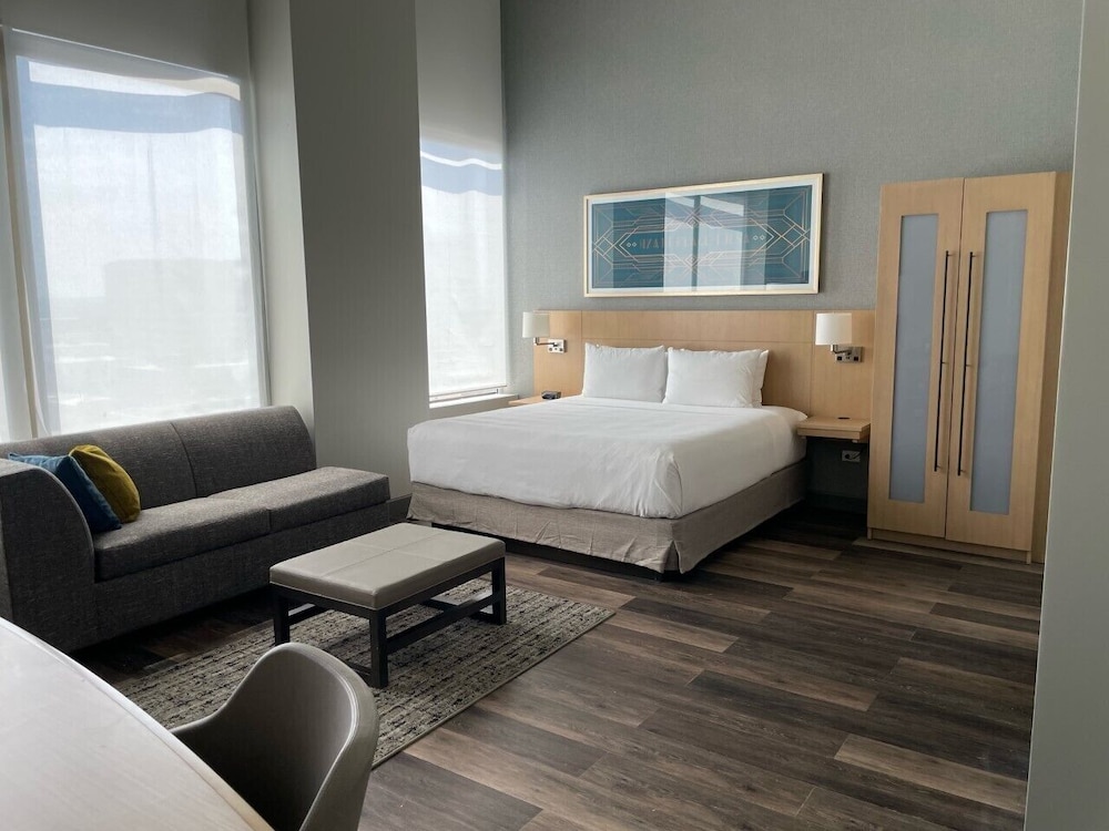 Hyatt Place properties in this category typically carry a consistent set of amenities that corporate travelers rely on. The fitness center supports guests with early morning or late evening workout needs, a common priority for road warriors on tight schedules. The Gallery Menu runs around the clock, which matters for groups arriving on irregular schedules or wrapping late-night sessions. The full bar allows for informal team gatherings without requiring everyone to head out into the city. Guest rooms in this brand tier include the Hyatt Grand Bed and a sectional sofa, giving travelers more functional living space than a standard single-room layout.