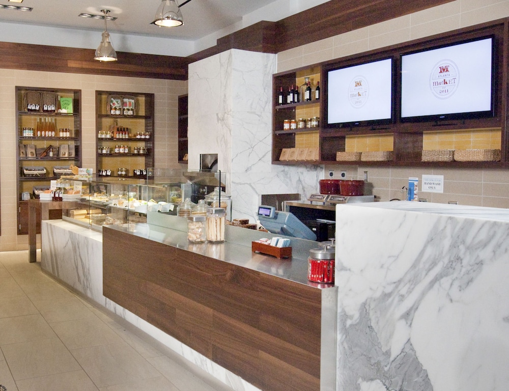 The Peachtree Street address places the hotel within a short walk of the Georgia World Congress Center, Mercedes-Benz Stadium, State Farm Arena, and the broader Midtown and Downtown business districts. Hartsfield-Jackson Atlanta International Airport connects via MARTA rail with a station nearby, giving arriving guests a direct transit option without relying on ground transportation.