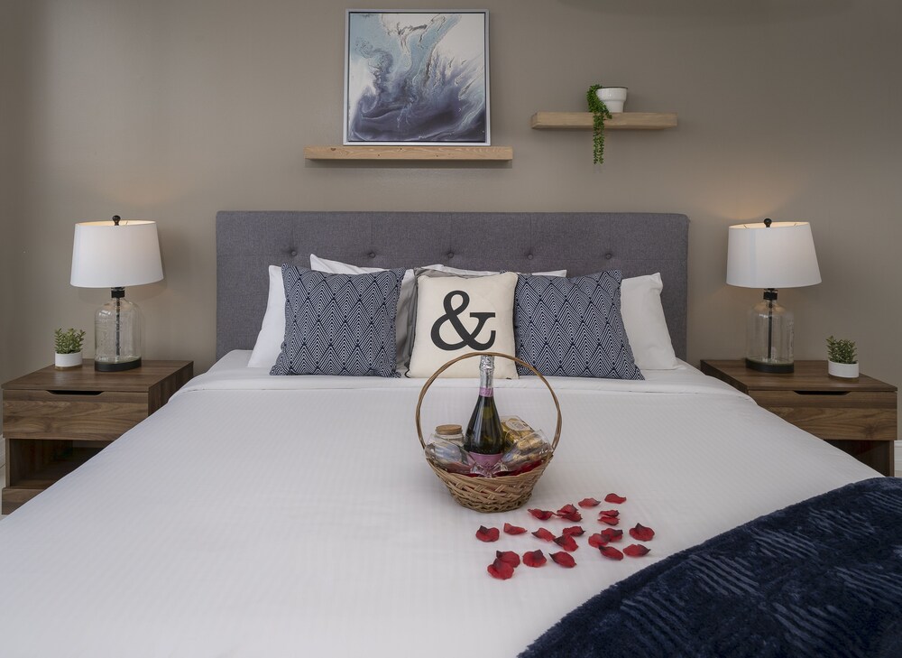 Suites feel like modern condos rather than standard hotel rooms. Floor plans typically include a living room that can hold a real conversation or a quick team huddle, a dining table that doubles as a workstation, and a bedroom you can keep dark and quiet for early starts. Kitchens are built for everyday use with a full size refrigerator and freezer, oven or cooktop, microwave, dishwasher, and the cookware and dinnerware you need to stop relying on restaurant meals. Many units include an in suite washer and dryer, which is a major time saver for weeklong stays. Storage is sensible, with closets and drawers that handle longer packing lists, gym gear, and event attire.