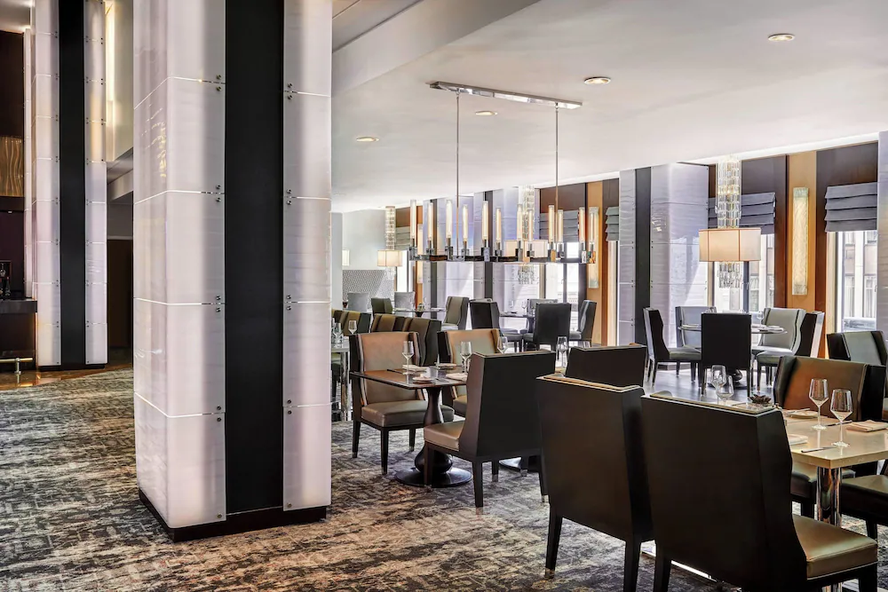 Downstairs, the hotel’s shared spaces are geared toward quick coordination rather than large-scale programming. A lobby area that supports short meetups makes it easier to run a room block, especially when arrivals are staggered or when the group splits into smaller clusters for different agendas. On-site dining and bar service also reduces the arrival-night scramble, since you can point everyone to one place before the group fans out across the neighborhood.