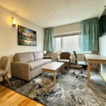 Each unit comes equipped with a full kitchen, including a refrigerator, stove, oven, and dishwasher. This setup allows guests to prepare their own meals, a significant convenience for longer stays or those with dietary restrictions. In unit laundry machines are standard, eliminating the need to find a laundromat or pay for expensive hotel valet services. The living areas are set up for relaxation, with comfortable seating and streaming capable televisions.
