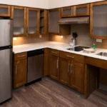 Rooms are designed for real cooking and real downtime. Each guestroom includes a full-size refrigerator and freezer, two-burner cooktop, microwave, and sink, along with basic cookware, dishes, and utensils so weekly meal prep is simple. A combined dining and work surface gives you room to spread out a laptop and paperwork, and outlets are placed where you expect them. Beds have quality linens and multiple pillow options. Blackout window coverings help with early alarms or night shifts. Many rooms include a reclining chair that turns the living area into a comfortable spot to decompress and stream a show after long days.