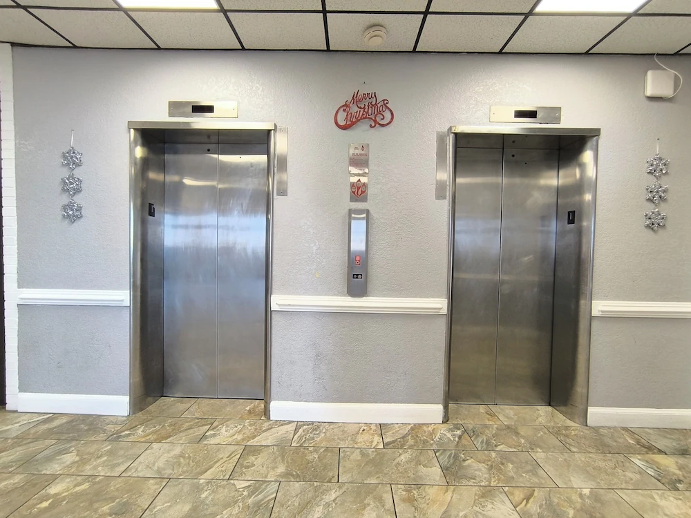 Elevator access and interior hallways common to multi-story oceanfront hotels