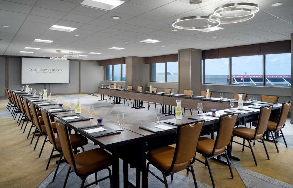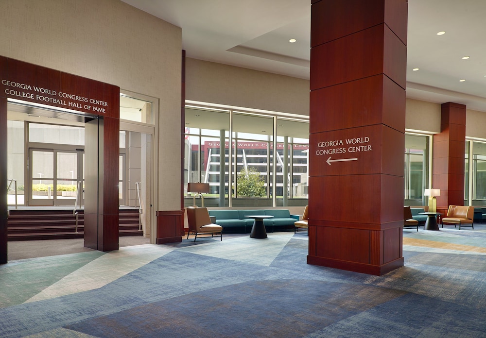 The address on Marietta Street NW puts the hotel directly adjacent to Centennial Olympic Park and within a short walk of the Georgia Aquarium, the Mercedes-Benz Stadium area, and the Georgia World Congress Center, one of the largest convention complexes in the country. Hartsfield-Jackson Atlanta International Airport is roughly 20 minutes by car or a direct MARTA train ride, which matters when you have attendees flying in from multiple cities.