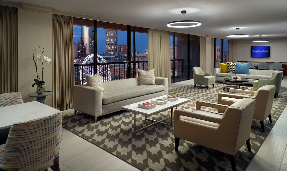 The Omni Atlanta Hotel at Centennial Park is one of the largest hotels in downtown Atlanta, with 1,070 rooms spread across a tower that sits right on the edge of Centennial Olympic Park. It is a genuinely big property, and that scale matters when you are trying to accommodate a large group without splitting them across multiple overflow hotels. The location puts guests within easy walking distance of major Atlanta attractions and convention infrastructure, which makes logistics significantly less painful for group coordinators.