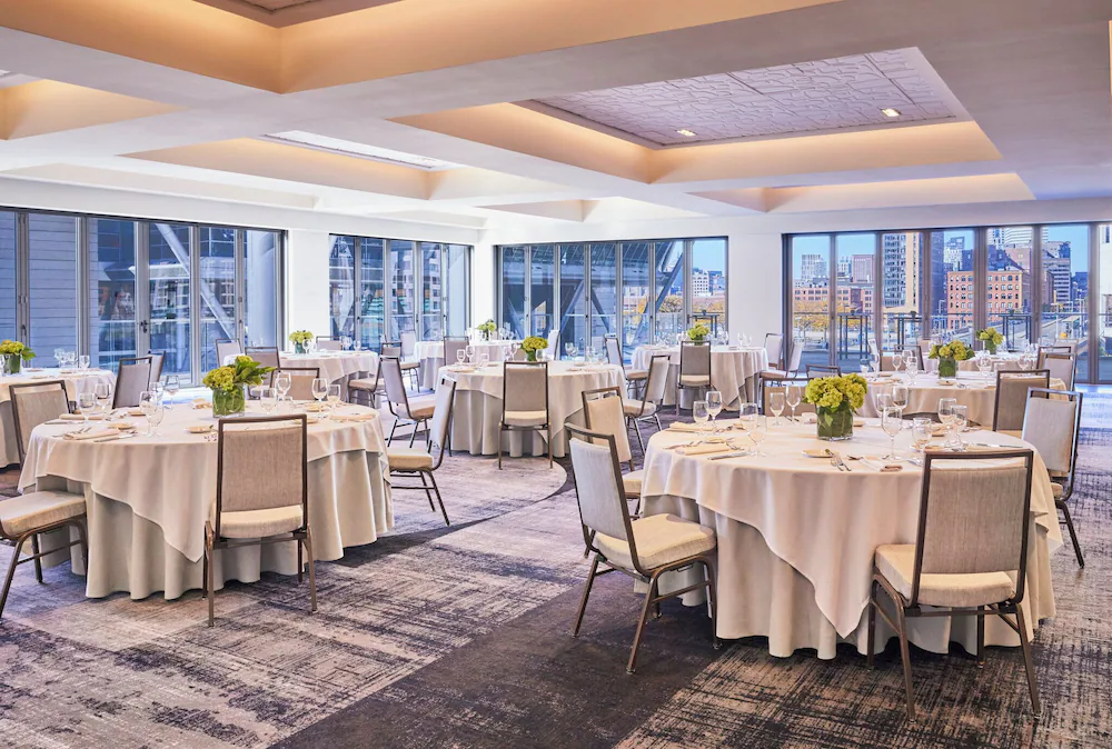 The Omni Boston Hotel at the Seaport is a large, modern hotel with 1,054 rooms in the center of the Seaport District. The property is a major destination for conferences and events, as it is directly across from the Boston Convention and Exhibition Center and features 100,000 square feet of its own event space, including the largest hotel ballroom in Boston.
