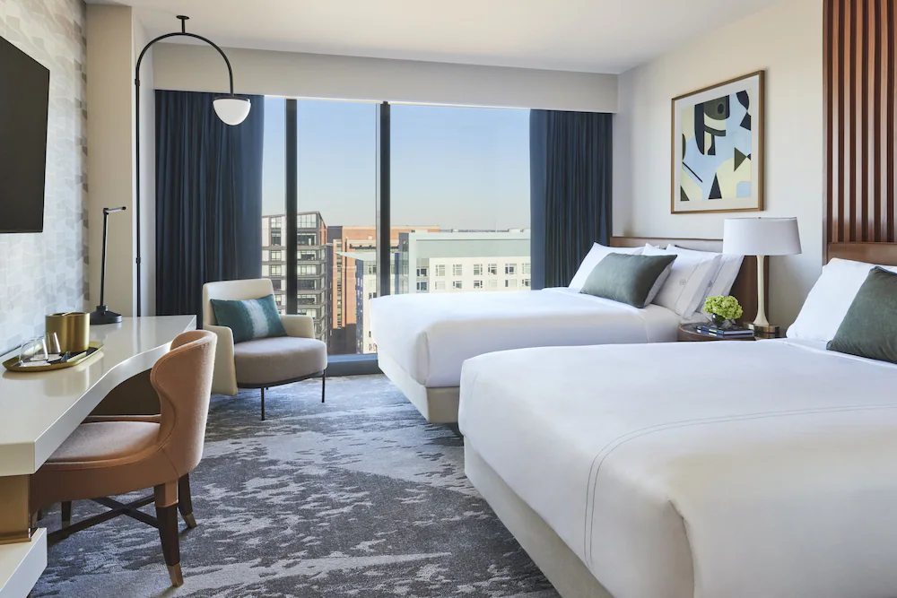 Guests have access to a wide array of amenities, including several distinct dining venues. The hotel is home to Kestra for Mediterranean-American fare, The Sporting Club for an upscale sports bar experience, and the French-style boulangerie Cocorico.