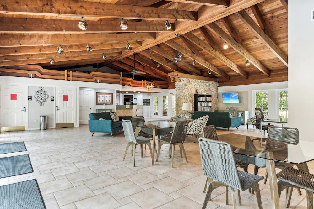 Lobby and pool-adjacent zones that convert easily for welcome hours and sponsor tables
