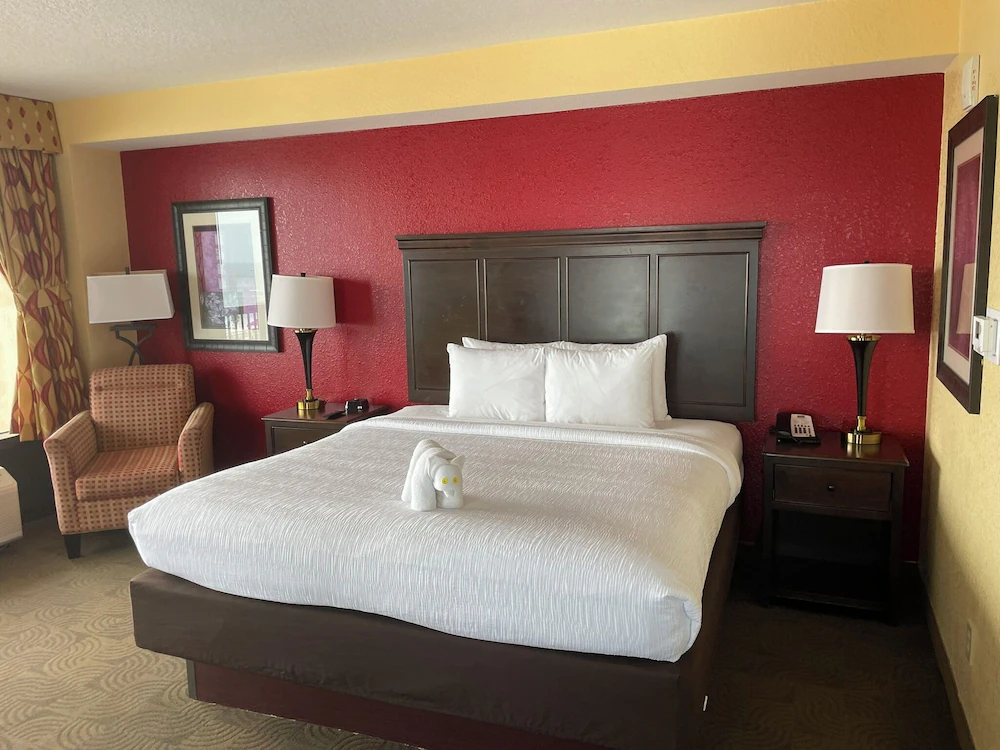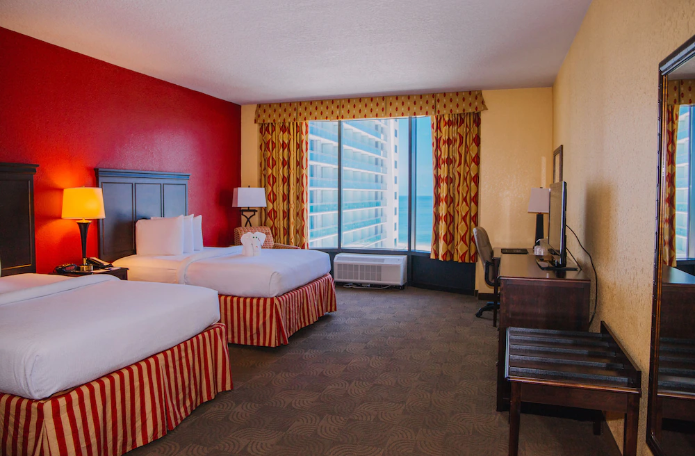 Inside, the hotel is geared toward travelers who want convenience over extra fuss. The layout is straightforward, with guest rooms stacked above active public areas and a lobby that tends to stay busy because people are constantly coming and going. Rooms are typically designed around short-to-medium stays, with a mix of standard configurations and view-focused options, and many groups choose this property because it keeps everyone close to the same walking routes.