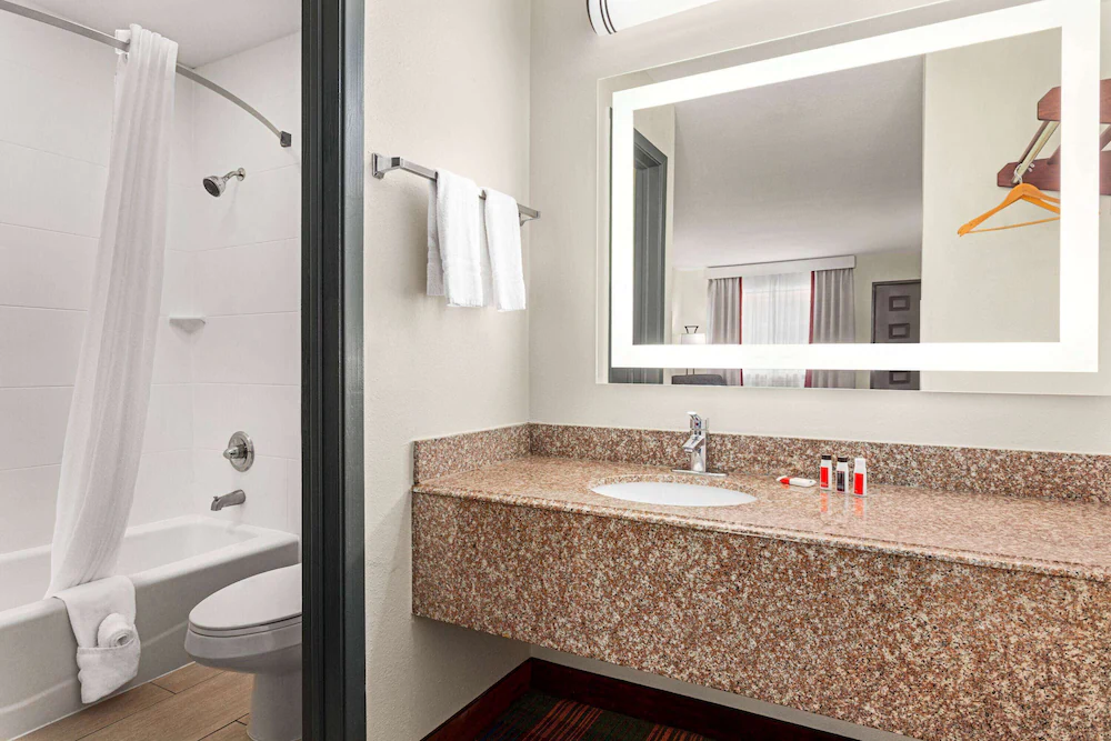 Ramada by Wyndham San Antonio Near SeaWorld Lackland AFB gives you a straightforward base on the west side for JBSA Lackland. The address places you near the main routes to the gates, along with grocery stores, pharmacies, coffee, and fuel. If you are in town for several weeks, the value is in the simple rhythm you can keep here. Rooms include a mini fridge and microwave for quick meals, Wi-Fi is steady for online modules, and parking is easy if you are coming and going at odd hours.