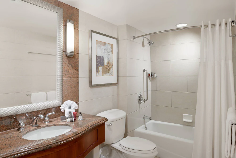 Guest rooms are designed for rest and routine between sessions. Expect comfortable bedding, blackout drapery, a proper desk or dining height table for laptop time, strong Wi-Fi, and accessible charging so devices stay powered. Many rooms frame skyline or stadium vistas that make quick resets feel calm rather than rushed. Suite categories add living space for VIP hospitality, interview blocks, or small team huddles. For multi-night programs, reliable breakfast service, grab and go choices, and consistent housekeeping keep travelers on pace.