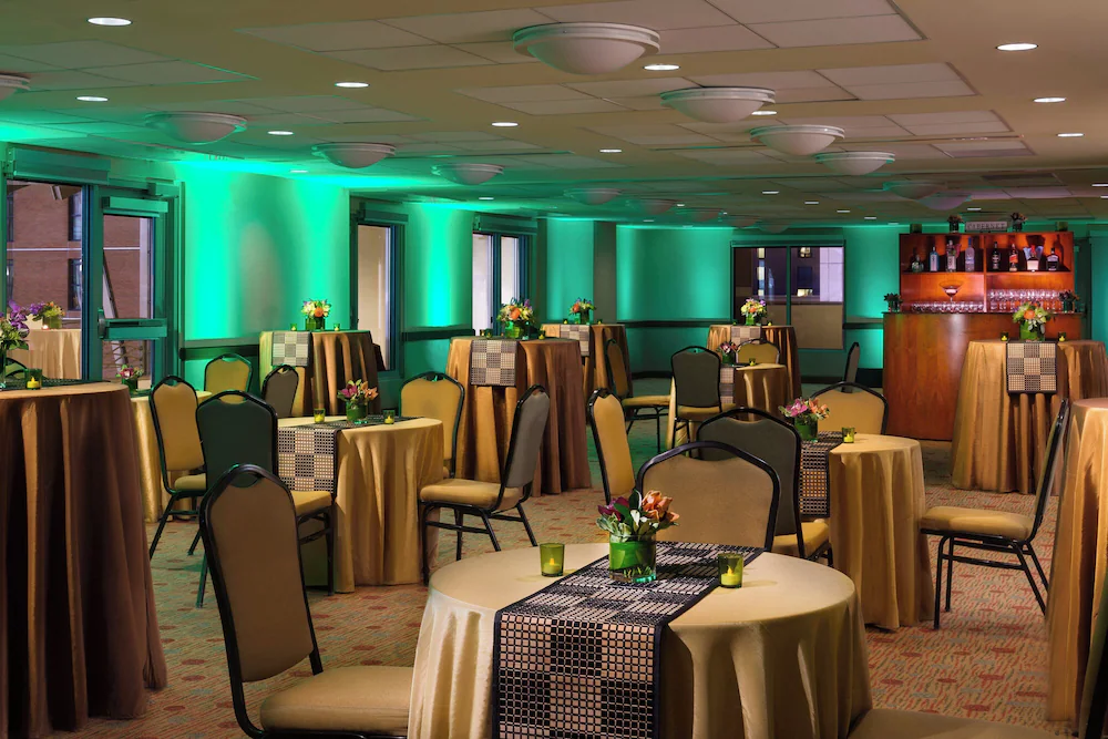 Meeting flow emphasizes clarity. A contemporary ballroom supports keynotes, awards, and training blocks with clean sightlines, while adjacent salons scale for workshops and board meetings. Prefunction areas absorb registration, sponsor exhibits, and timed coffee service without bottlenecks. Load in paths and service elevators keep production behind the scenes. When the agenda shifts to evening, the rooftop becomes a natural rally point for welcome hours and photo calls, and private dining on property or nearby helps executive dinners stay on schedule.