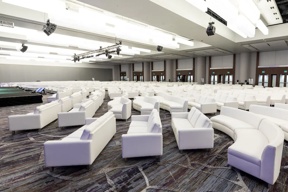 The hotel’s infrastructure is specifically designed for complex, high-density events. The event spaces are stacked vertically, allowing for streamlined attendee flow between general sessions, breakouts, and meals. Generous pre-function corridors provide ample room for registration desks, sponsor activations, and networking hubs without creating bottlenecks. Behind the scenes, the hotel is equipped with robust power distribution, rigging points for ambitious lighting and A/V, and practical freight access that allows production teams to flip rooms quickly and efficiently.