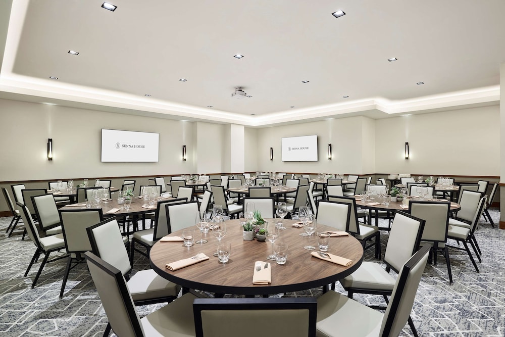 Total indoor meeting space at Senna House comes to 2,385 sq ft, with the largest room measuring 1,800 sq ft and the second largest at 600 sq ft. The Copper Ballroom accommodates up to 160 seated guests and can be paired with customizable breakout spaces for meetings of varying sizes. The property also offers 7,596 sq ft of outdoor event space, including an outdoor patio suited for ballroom, conference, and boardroom gatherings. Executive Chef Beau MacMillan leads the on-site catering team, supporting full food and beverage service across all event formats.
