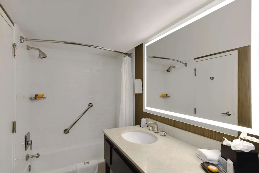 Guest rooms lean into comfort and practicality. Expect productive work zones, blackout window coverings for early starts, mini fridges for quick breakfasts, and bedding built for recovery after long show days. King and two queen categories make rooming lists simple for colleagues, families, and chaperoned rosters. A small suite mix gives you places to house speakers, set up hospitality lounges, or run interviews near the event floors. Because the tower repeats predictably, housing managers can assign rooms fairly by view and elevator proximity without a long audit.