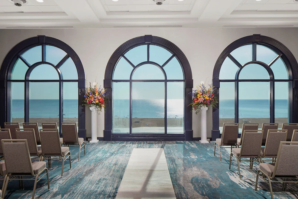 Oceanfront ballrooms that can host receptions and large-group meals on site