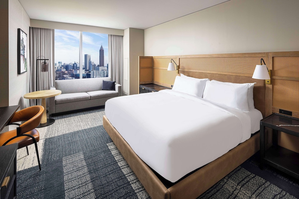The location puts guests within walking distance of Mercedes-Benz Stadium and State Farm Arena, making it a regular choice for sporting events, concerts, and large association meetings that draw national attendance. Hartsfield-Jackson Atlanta International Airport is roughly 15 minutes by car or MARTA rail, keeping arrival logistics manageable for attendees flying in from across the country.