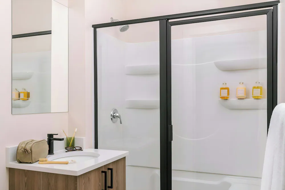 Living areas include 50 inch flat screen televisions with digital streaming capabilities. A significant convenience for longer visits is the inclusion of in unit laundry machines, meaning guests have private access to a washer and dryer without needing to use a communal facility. Bathrooms are stocked with fresh towels and toiletries, and select units may feature a bathtub.